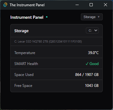 - S.M.A.R.T. health status and temperature monitoring for all storage drives